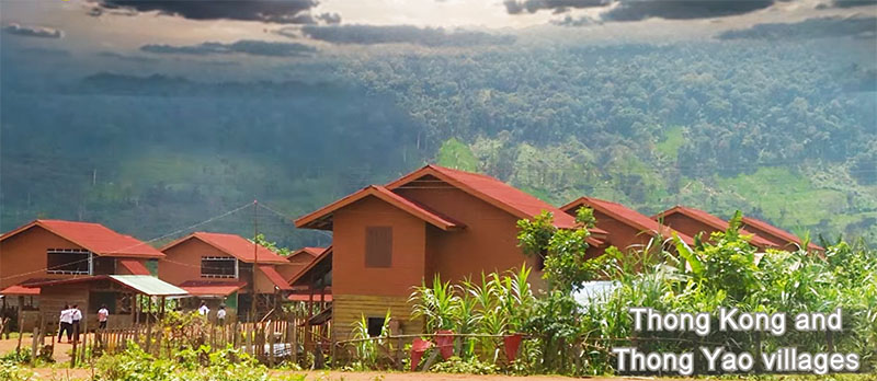 The project involved relocation of 1,375 local people from Thong Kong and Thong Yao villages to a new resettlement village about 15 km away from their original village. Images below for Houay Lamphan Gnai resettlement village with 168 new homes, water system, health center and school: