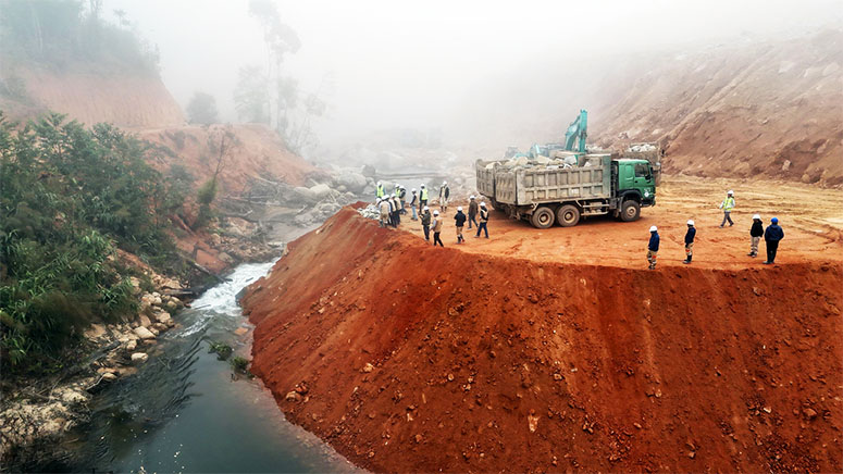 + Completion of power lines for construction, construction roads, storage yard of materials for dam embarkment