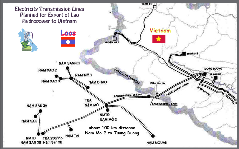 Nam Mo 2 connects to transmission line for export to Vietnam in map below. See enlarged version HERE.