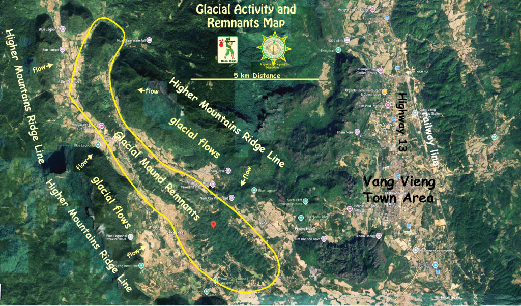 If glacial activity occurred near Vang Vieng 100 km south west of Plain of Jars it makes it more likely to also have occured at the Plain of Jars further north at a higher elevation.